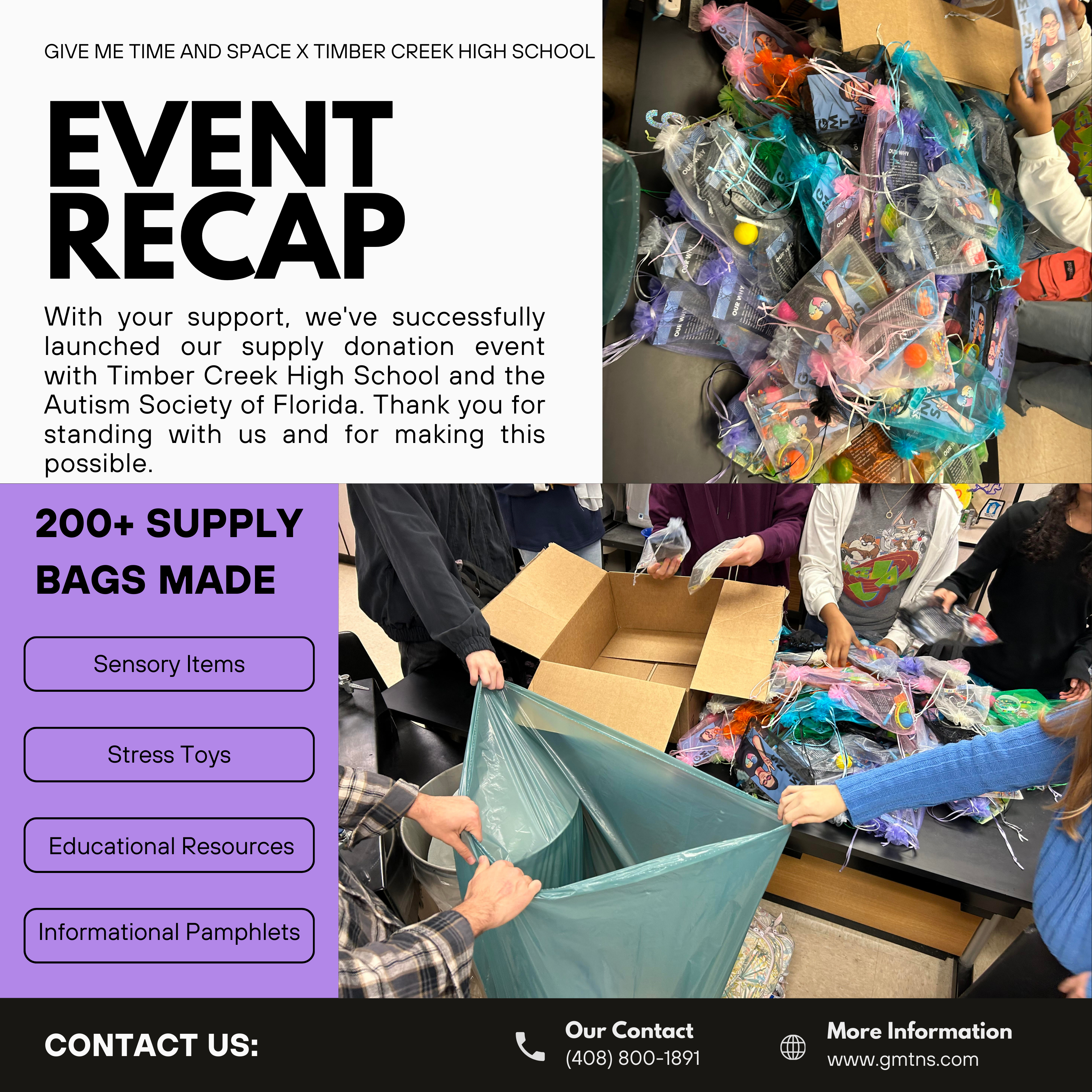 On February 6th student volunteers packaged 200 donation bags to give to the ASD community of Florida, that are filled with sensory items, school supplies, invaluable educational resources, and more.