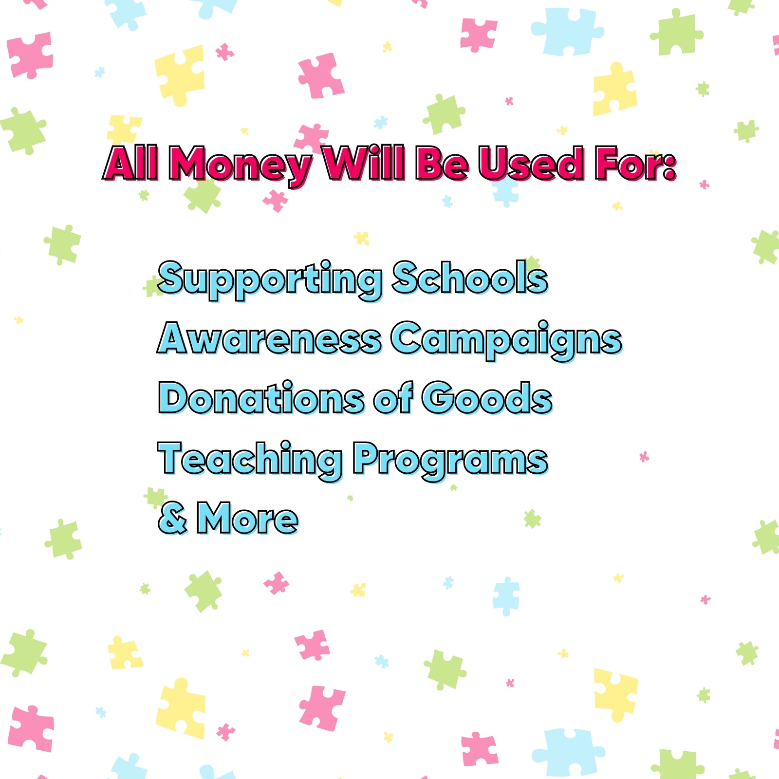 With your support, we can provide t-shirts for schools, camps, and special events, fostering a sense of unity and empowerment for people on the autism spectrum. Let's rally together to ensure that every child feels seen, valued, and celebrated, equipping them with a tangible symbol of support and encouraging them to shine brightly in all aspects of their lives.